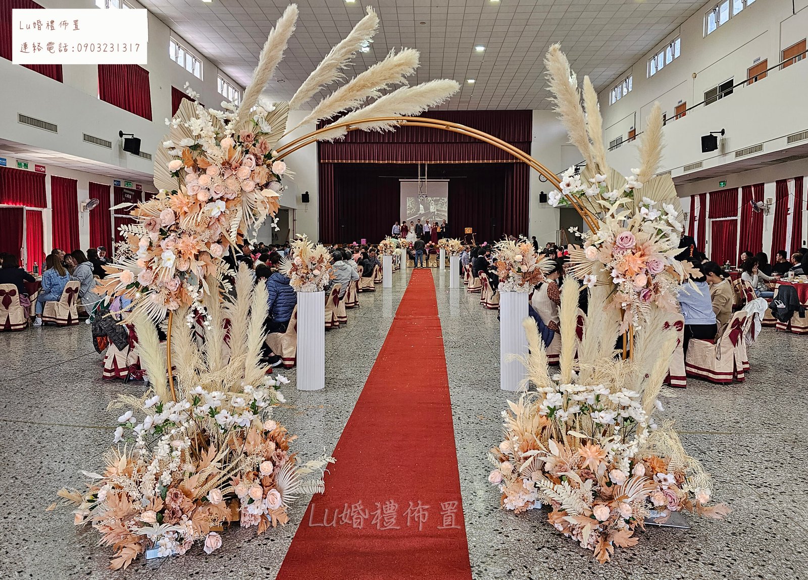 這款婚禮進場拱門不僅美觀獨特,還能提升整場婚禮的格調與氛圍,讓每位賓客都為之一驚。蘆葦與玫瑰的搭配,象徵著自然與愛情的結合。無論是精緻的室內婚禮還是開放的戶外婚禮,這道進場拱門都將成為婚禮的視覺焦點,吸引每一位賓客的目光,並在您的婚禮中留下深刻的印象。